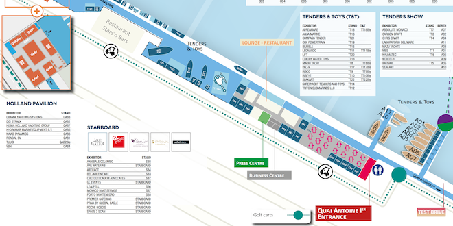 The Starboard exhibition space will be a must see area for many in the industry. A select group of superyacht exhibitors showcasing superyacht destinations, luxury products and fine arts will sit next to the second official Monaco Yacht Show restaurant and lounge. This new area will offer snacks and cocktails, with live piano bar entertainment after 4.30pm during happy hour. Here you will also find many representatives from the international press- as the Show’s official Press Center is now located here. Exhibitors can also take advantage of the private meeting room space in the Business Center.