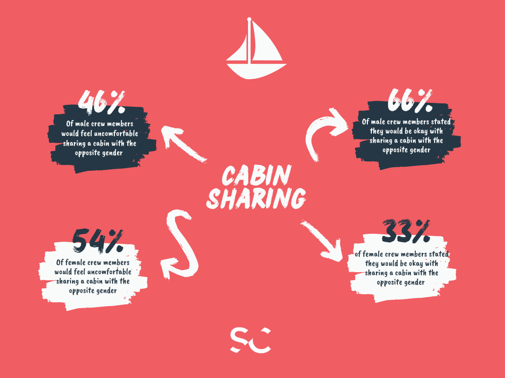 In a recent Facebook post on the popular group ‘Yachties: Name, Shame and Fame‘, where many crew members go to ask fellow Yachties advice on various subjects, one female crew member, aged 25, asked for advice after having been asked to share a cabin with a 56 year old Male chef. The crew member explained that she had been sleeping in the Crew Mess due to her discomfort with the situation. The responses varied. Many suggested the crew member simply leave the vessel, whilst others suggested she ‘toughen up’ or simply use earplugs. Other commenters pointed towards the MLC and suggested that the crew member raise the issue with the Captain. In order to discover more about the attitudes toward cabin sharing, we conducted an Instagram poll. When asked “How do you feel about sharing a cabin with the opposite gender onboard?”, 46% of Men and 54% of Women stated they would be uncomfortable. Interestingly, 66% of Men and 33% of Women stated they would be okay with it, whilst 53% of Men and 47% of Women stated they were unsure entirely.