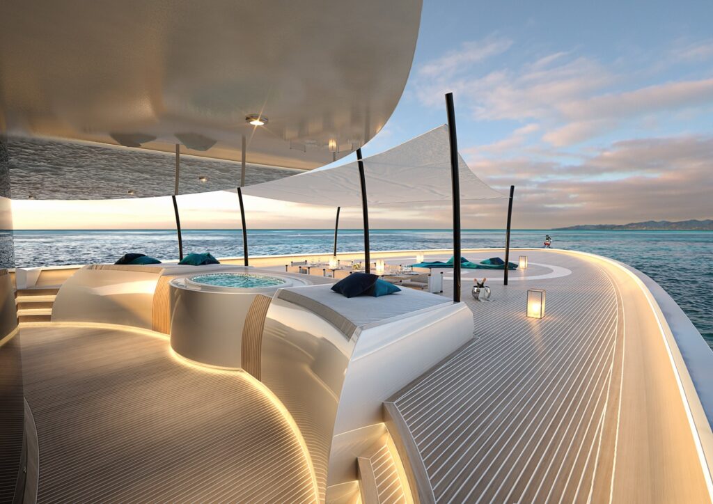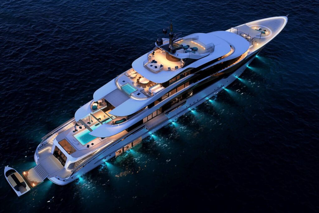 Project Skyfall will feature five decks, six staterooms and space to accommodate up to 12 guests and 28 crew members. The superyacht will also include a glass-fronted beach club and a 7.5m swimming pool for the guest’s relaxation. Elsewhere on the vessel is a helipad that can be transformed into an expansive party space, as well as an underwater cinema and 100 square metres of lounging space on each of the five decks.