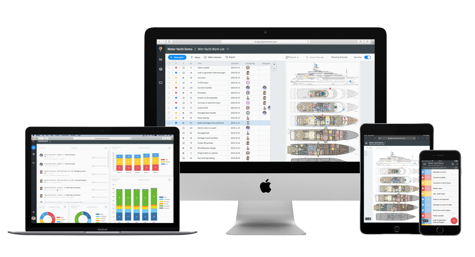 Pinpoint Works uses the latest technology in web and mobile apps and the interactive communication system can be used by crew, management companies, shipyards, surveyors and owner’s reps globally, during all lifecycles of a yacht: build, warranty, operation, refit, repaint, and surveys.