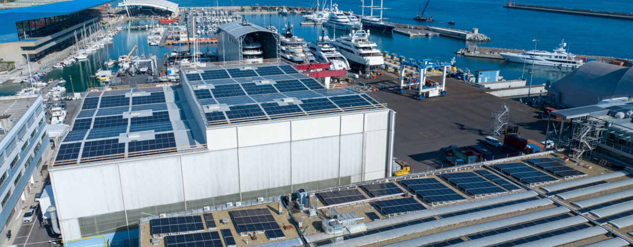 A new extensive photovoltaic system has been installed in Amico & Co which will cover 53% of the annual needs of the shipyard and Waterfront Marina production activities, supplying renewable energy. The on-site system occupies an area of over 4,300 m2 with an array of 1782 solar panels developing a maximum power of about 1MegaWatt peak (1MWp). This new investment made by Amico & Co represents another important step towards clean manufacturing and fuller integration of the superyacht activities with the city of Genoa.