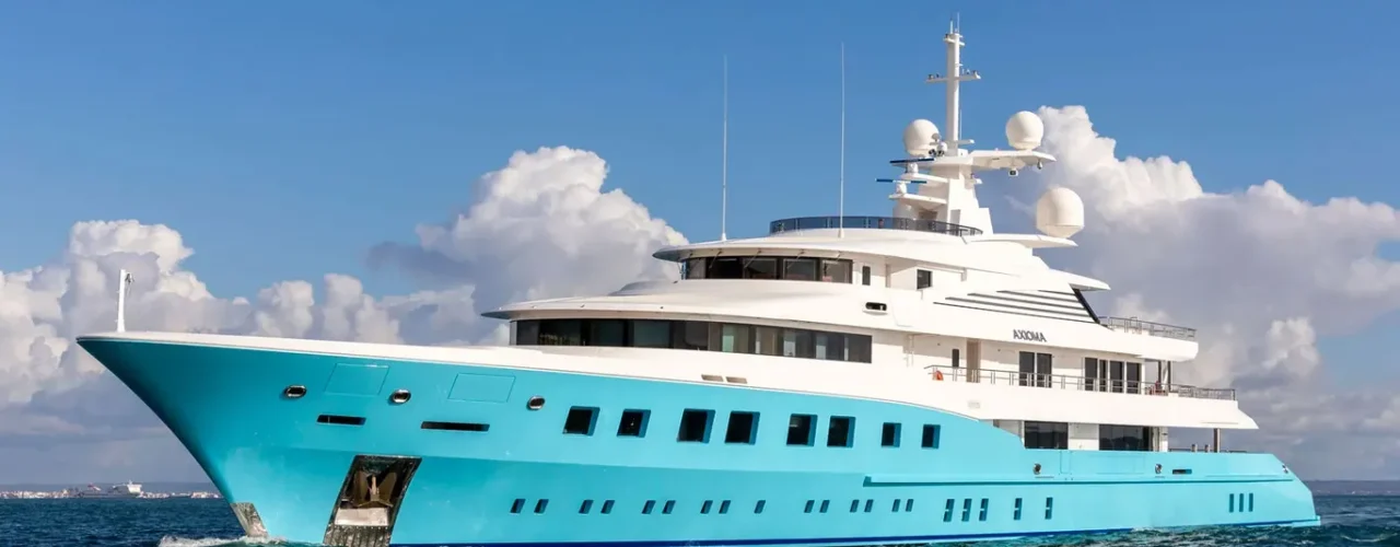 Crafted by Dunva Yachts and managed for charter by Camper & Nicolsons, the 72.5m Axioma stands out with its distinctive sky-blue hull. Its noteworthy features encompass “beach-house” interiors designed by the late Alberto Pinto, a spa, a private owner’s deck, and a breathtaking double-height saloon. Water enthusiasts onboard can enjoy an infinity pool on the aft deck and a Jacuzzi with a swim-up bar on the bridge deck. Following an auction and refurbishment, Axioma is set to make an appearance.