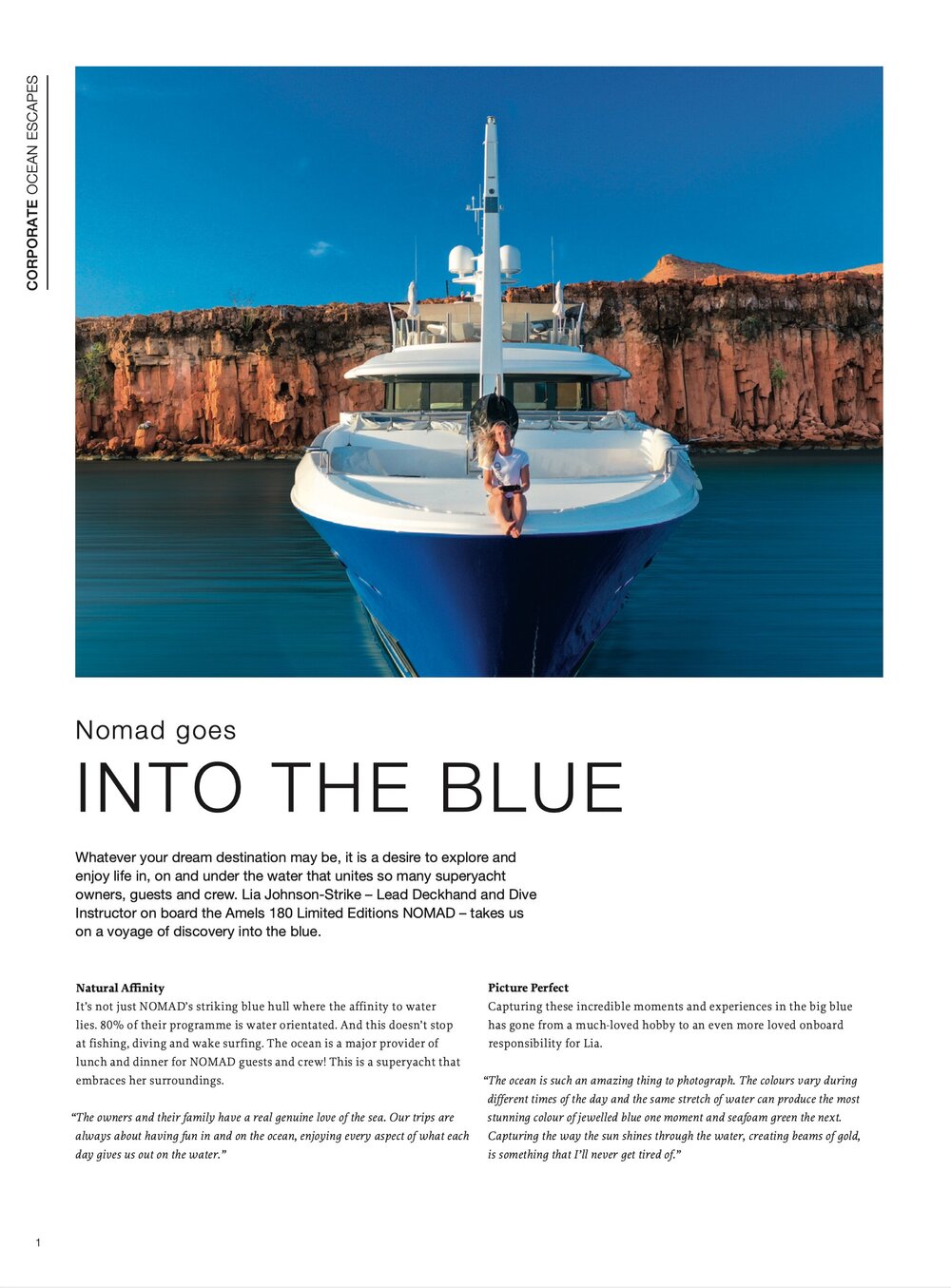 “My name is Lia Johnson-Strike, but people know me as LJ, I am the Lead Deckhand, Dive Instructor, and Photographer onboard M/Y Nomad. I was born in Alice Springs, a small town in the middle of the Australian outback. I have a massive passion for photography, scuba diving, and skiing. This is rather strange since Alice Springs is 1500km from the nearest beach, and there’s definitely no snow! I’ve been lucky enough to have lived in Canada, Trinidad and Tobago, Egypt, and Japan. And, I’ve studied Indonesian, Arabic, and Japanese.”