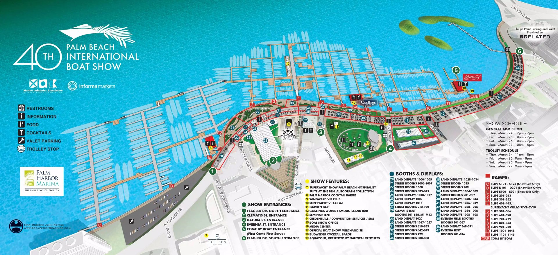 - For guests looking for a VIP experience, you have the option of the ‘Winward VIP experience’, giving you access to One-Day Show Access to the 2022 Palm Beach International Boat Show, the Windward VIP Club at the Lakeside Pavilion on Flagler Drive, A Premium Open Bar, Gourmet Food, and Pop-up Sponsorship Activations, Early access to the show one hour early, on Fri, Sat, and Sun through the Palm Harbour North entrance, and a One-Day General Admission Access to the Palm Beach Modern + Contemporary Art Fair.