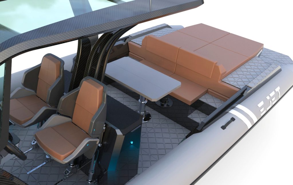 A fast-charging, fully electric tender, it has a powerful 300kw engine with increased range and speed and is incredibly well suited as a chase tender for larger yachts. The EJET was made for exploring untouched corners of the ocean. It offers everything traditional boating has – but emphasises on protecting nature and creating unforgettable moments for crew and passengers.