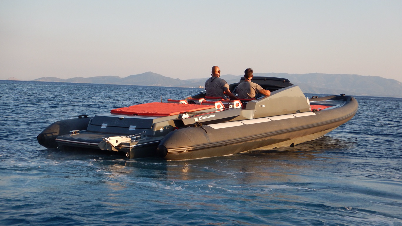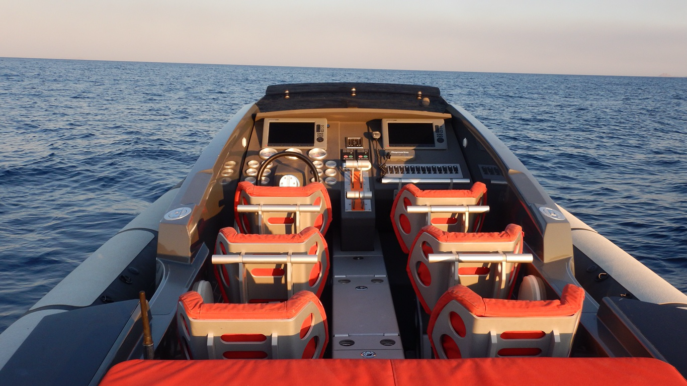 This is one fast tender and not the sort of thing you take the owner’s kids wake boarding behind! This is a head turning, super quick offshore monster. It held the record for the fastest RIB round Britain so it’s definitely not all show and no go! The Goldfish P1 definitely has the handling to back up its power.