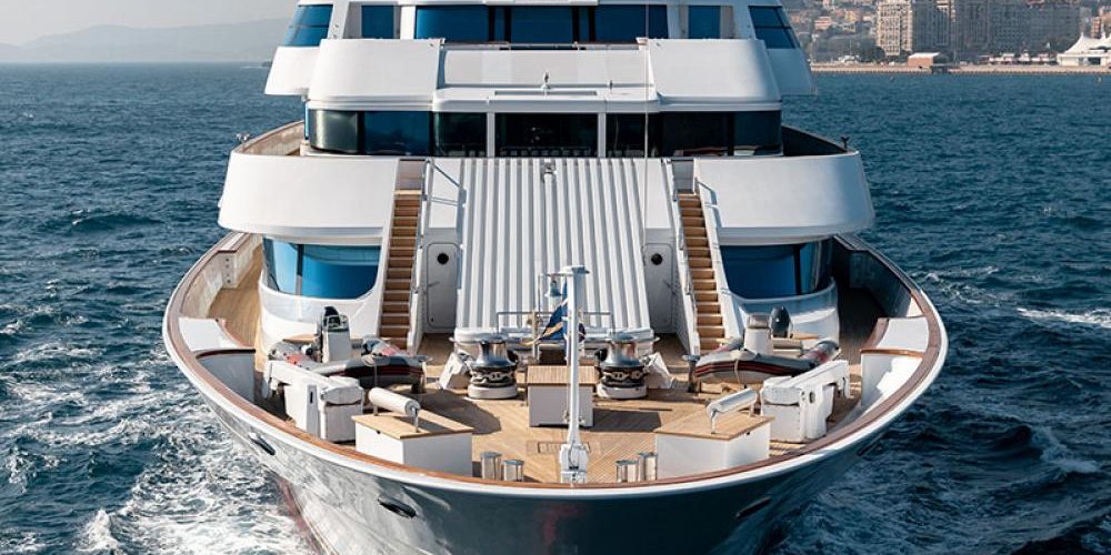 Delivered by Blohm+Voss in 1990. The 105m vessel has become the category-defining model for a generation of yachts. A pioneer of the beach club, hydraulic fold-out balconies, and the tender garage. Her interior volume is 6,359 GT, or 4,908m2 of interior space. Arranged across palatial saloons, an owner’s study, cinema, bakery, guest elevator, spa and gym. Plus two medical centres, and countless other features.
