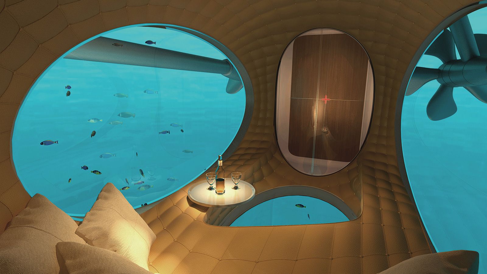 She carries upto 50 crew to look after her 20 guests and has a VERY cool glass observation area in the hull.