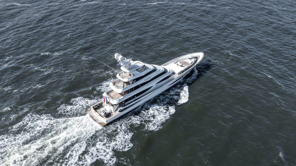 As a sportfisher, she has equipment that’s for hunting larger predatory fish (like marline and swordfish). When it’s nighttime, the yacht is illuminated by laser-powered exterior lighting. Also, the tower offers a viewing platform to the fishing area aft.