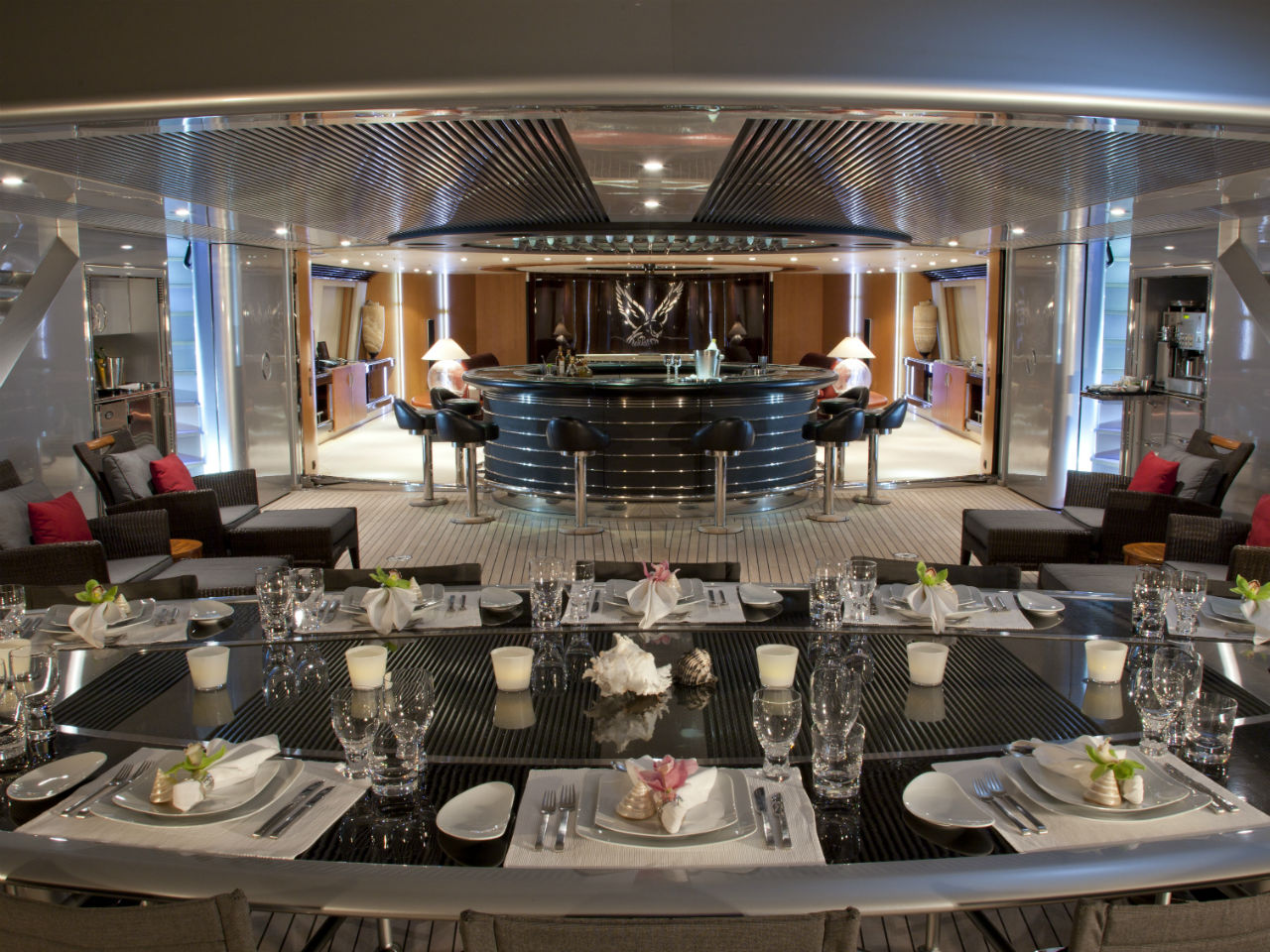 Despite her age, Maltese Falcon is a stunning yacht. She is still considered to be innovative. Add to that her amazing free standing Dyna Rig or “falcon Rig” and sailing performance which is stunning for a yacht this size. Reputed to have cost over $150m USD to build and charters for $480,000 per week. A bargain compared with M/Y Flying Fox at €3,500,000 per week.