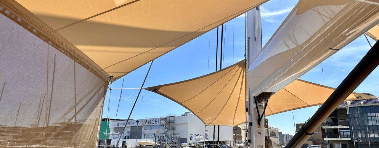 high loads. For motor yachts that have fixed tensile awnings, we use Stamoid Top, or Soltis mesh, depending on usage requirements.