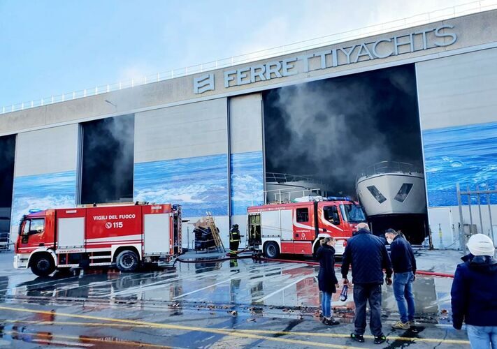 Ferretti Group released a statement about the fire, explaining: “The fire that broke out in the early hours of the morning yesterday, Tuesday, January 11, involving a boat under construction at the Cattolica shipyard, caused no injuries thanks to the immediate implementation of safety procedures, with the intervention of the shipyard’s fire-fighting teams and the local fire brigade.”