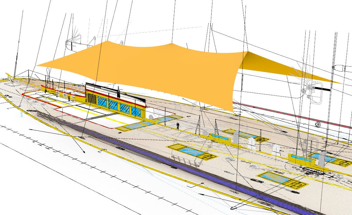 “The brief was for a simple awning design that could be set up and broken down by a small crew with minimal fuss, which also took up minimal storage space. Having worked with Paul a few years ago, I knew his background and had confidence in his experience with tensile awnings. By the time I signed off the computer renderings, we had less than 3 weeks before the owner arrived. The awning was delivered to us in Palma with a couple of days to spare, which was an awesome turnaround. Once set up and tweaked by their Palma partners (Loft Customs) it was clear that EYC had nailed it first time, and there was no need for any modification.