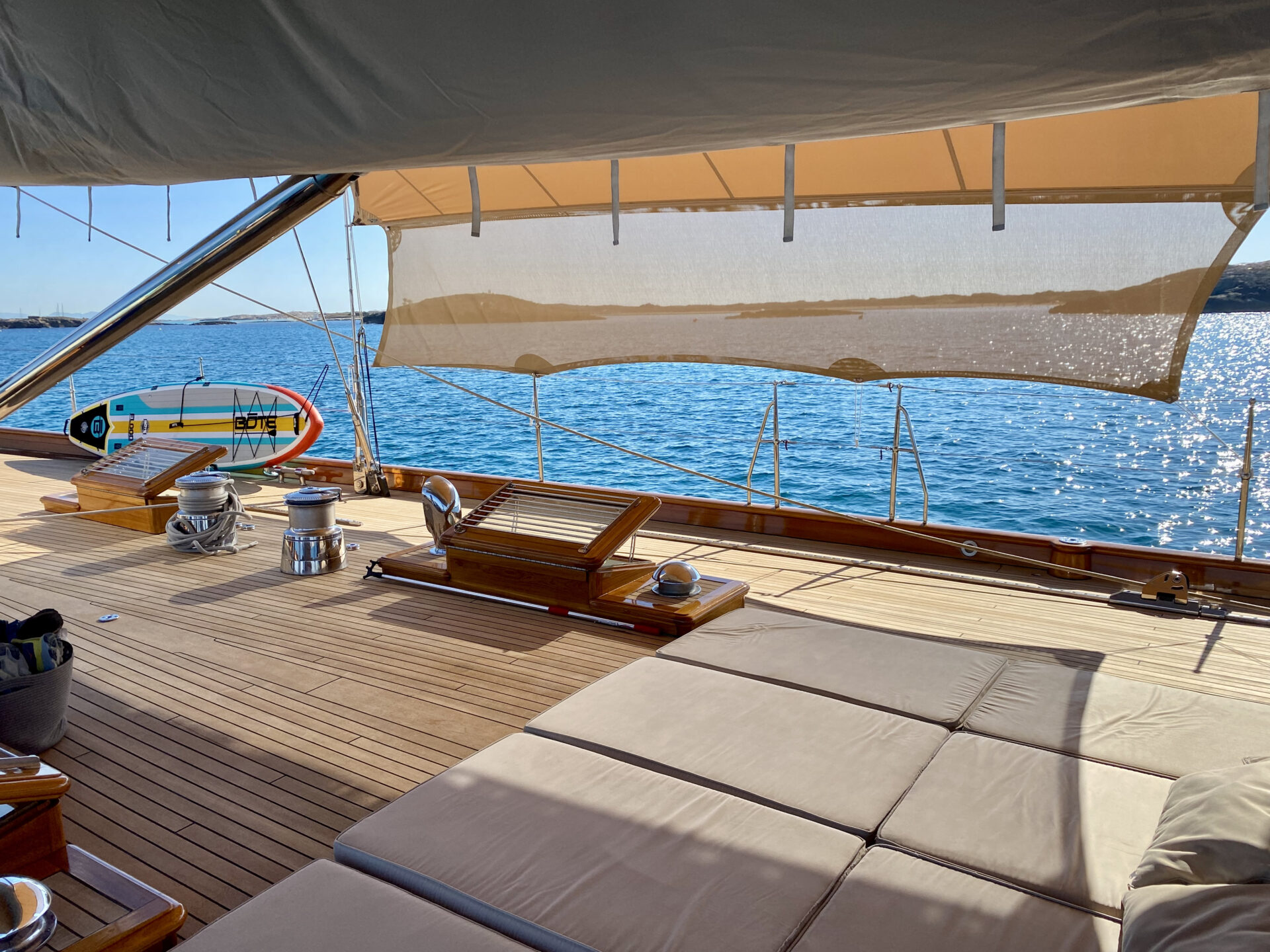 The owner and his children absolutely love the new awning, which he described as a total game changer. Primarily because it opens up a huge area of cushioned deck space for guest usage that would otherwise be out of bounds in the midday Mediterranean sun.”