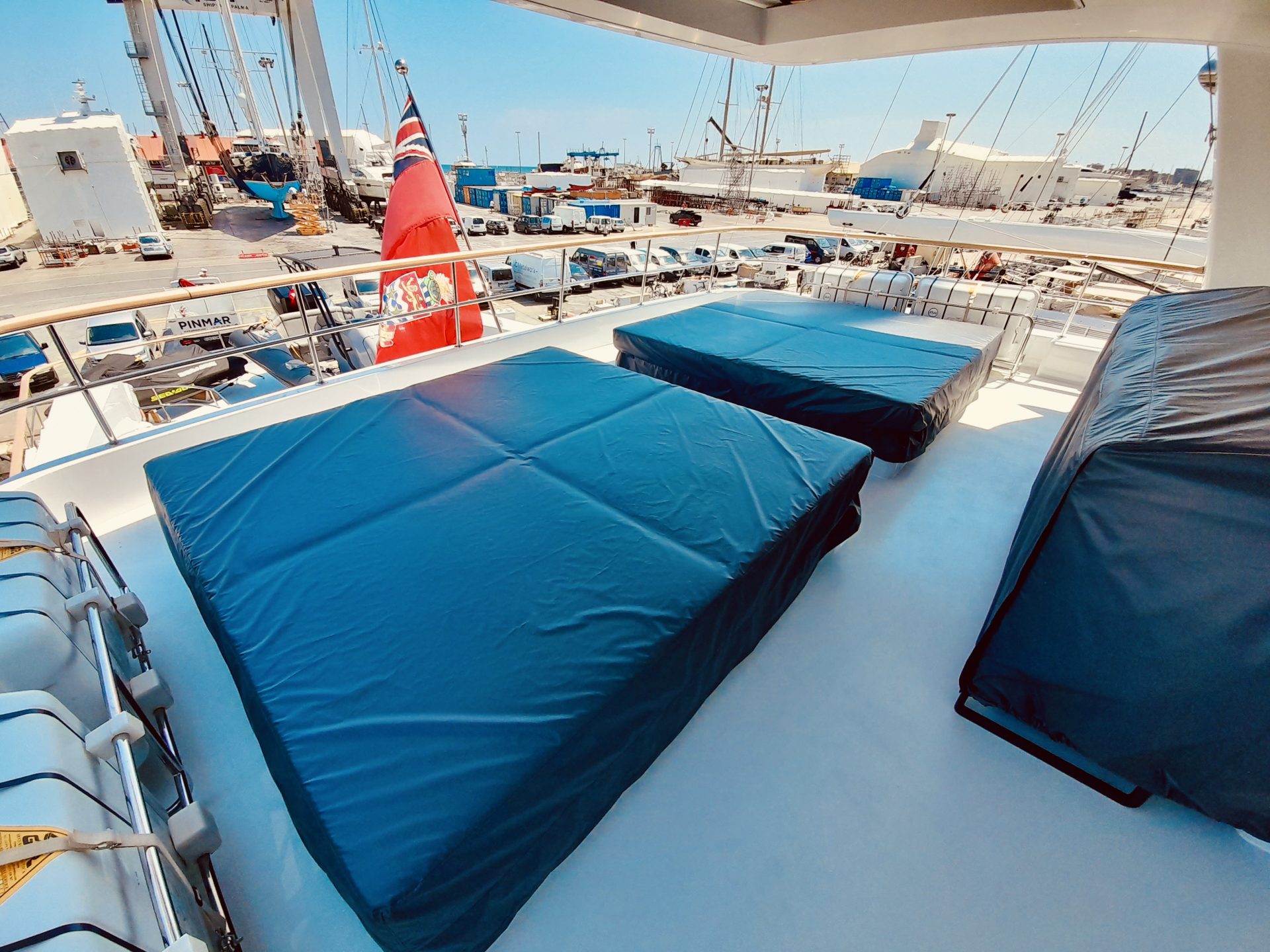 “The best way to maintain yacht furniture is to keep them covered and protected from the elements. Depending on the yacht’s itinerary, we find that most furniture is not in use for the majority of the time, for example, when the boat is on passage, overnight and when there are no guests onboard. Therefore, with a tailor-made, tight fitting cover, the longevity of expensive furniture can be increased significantly”