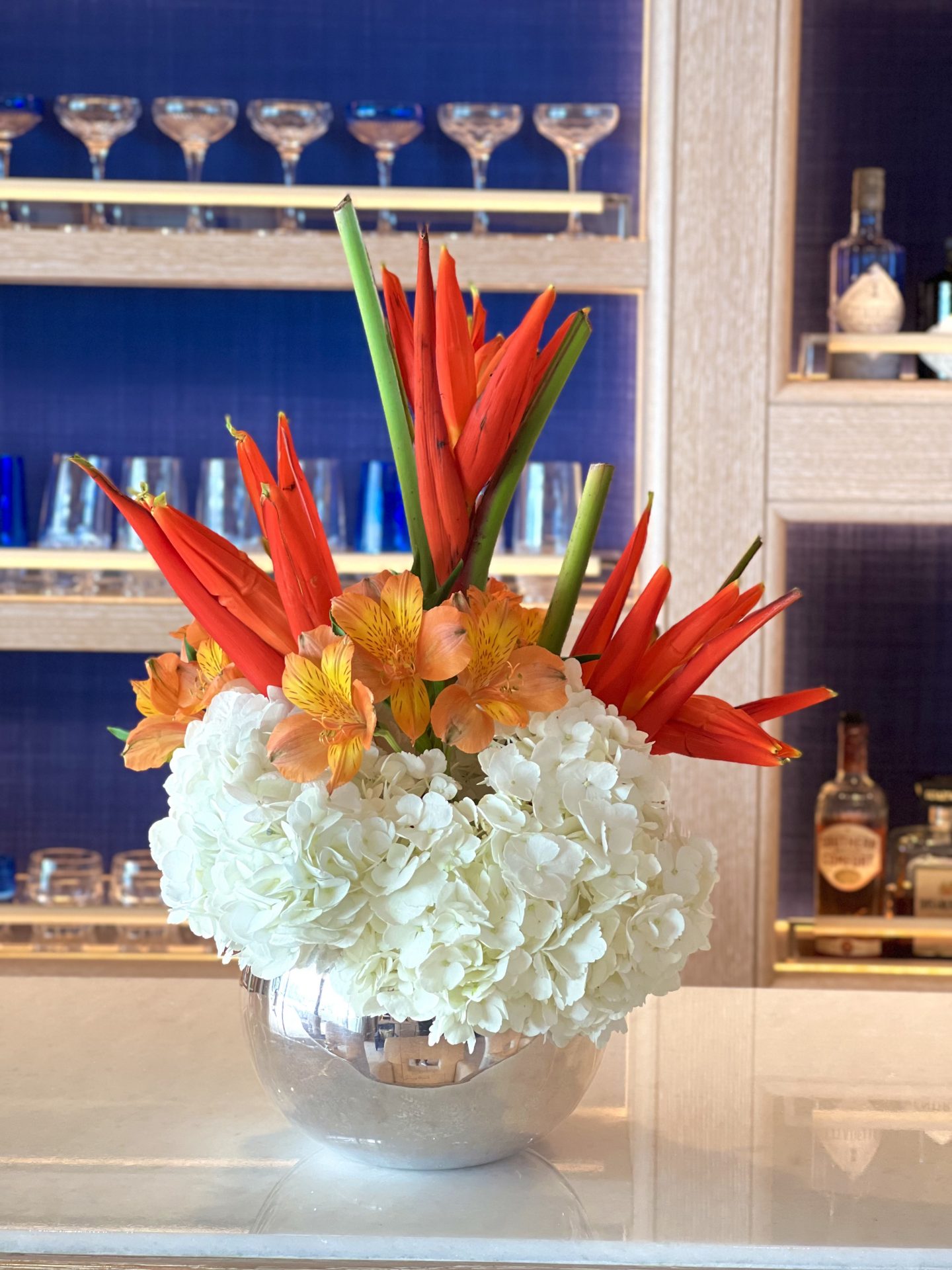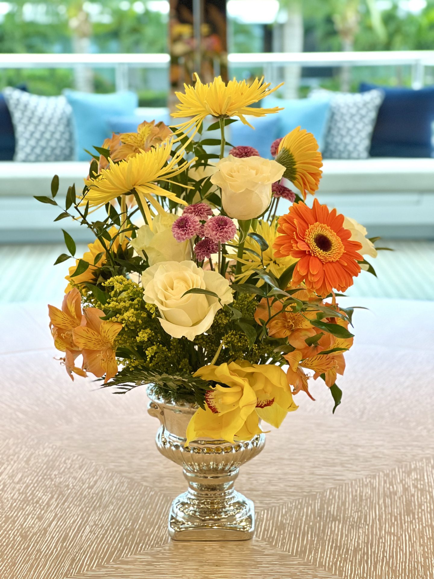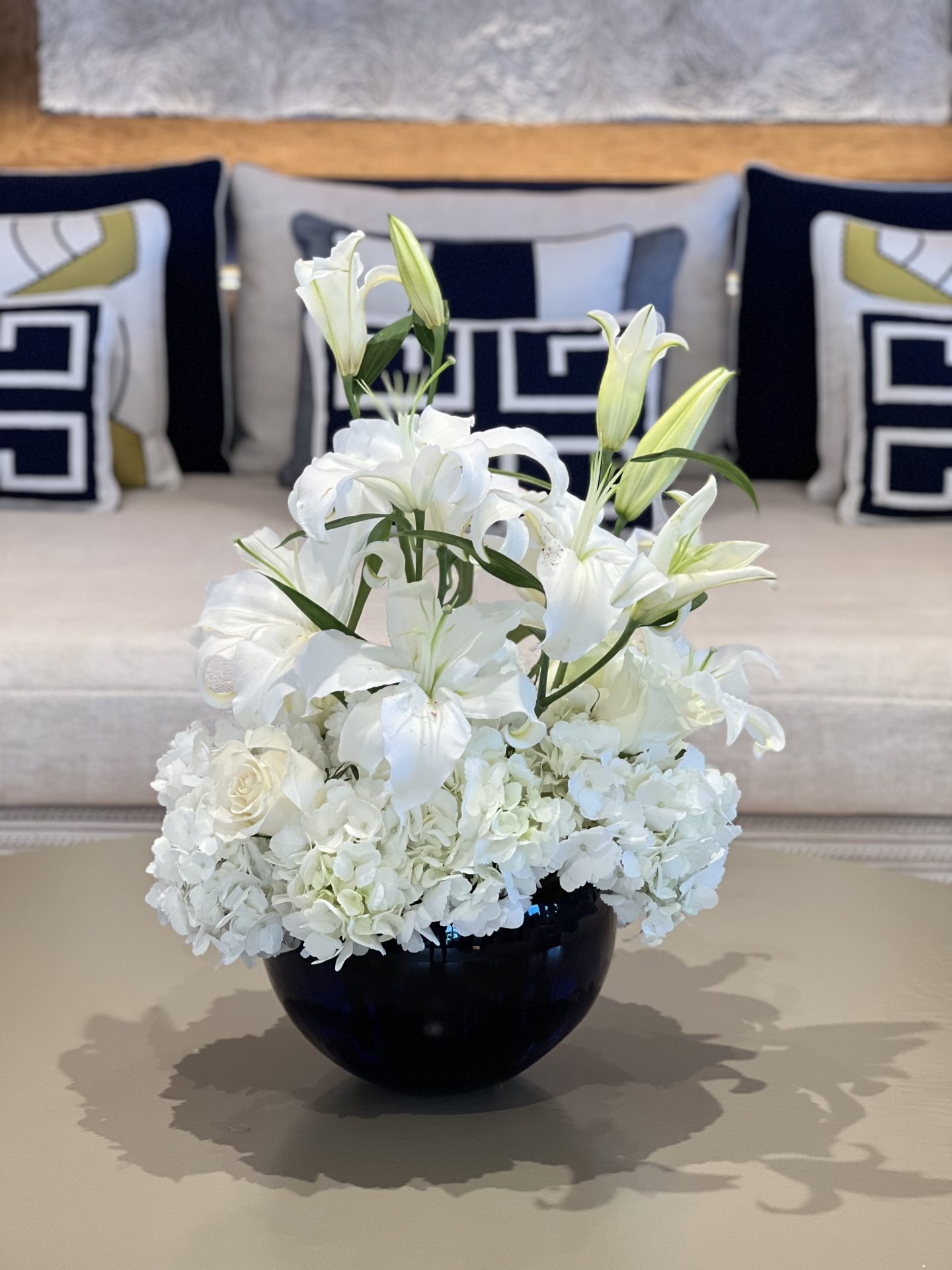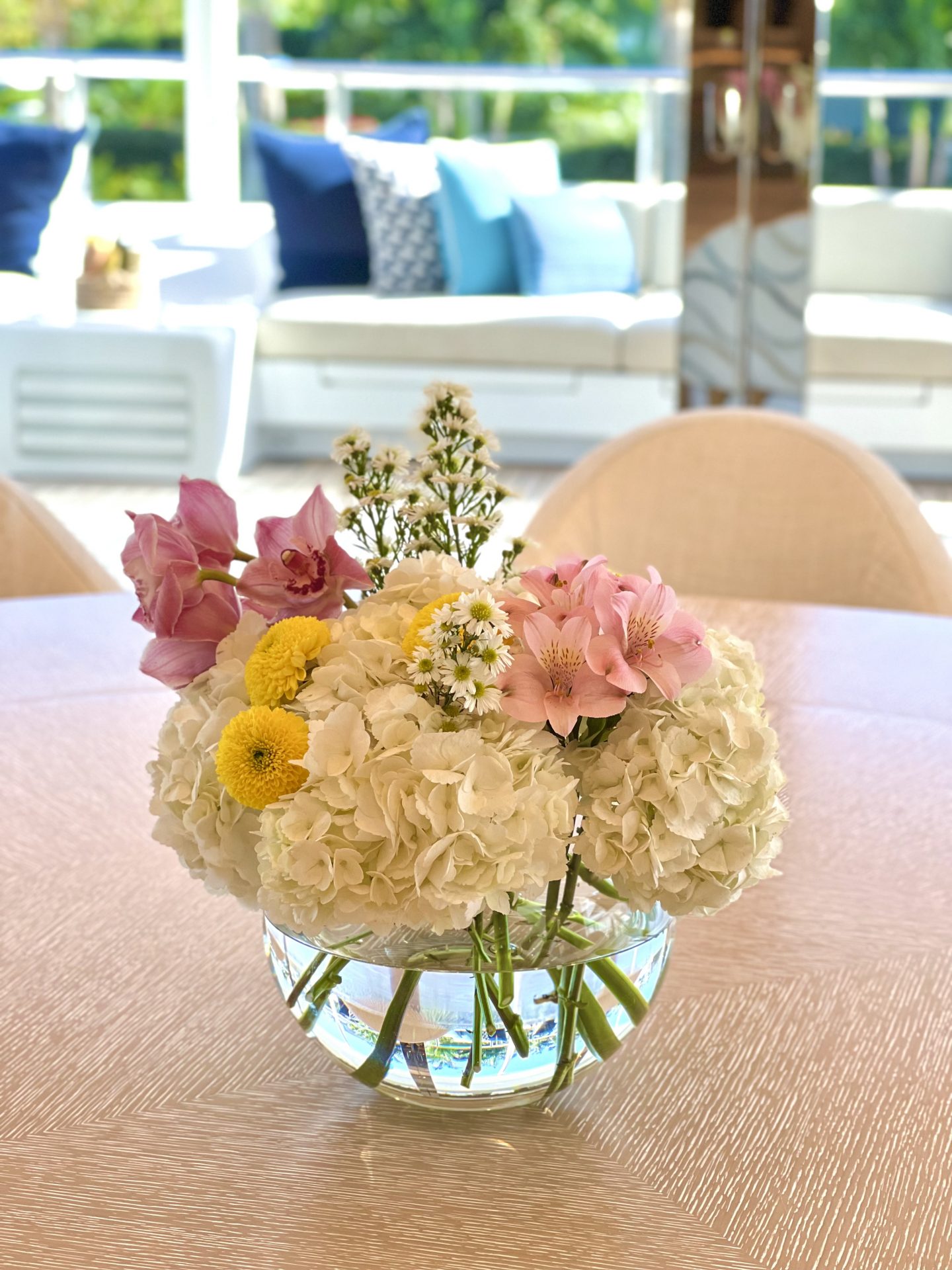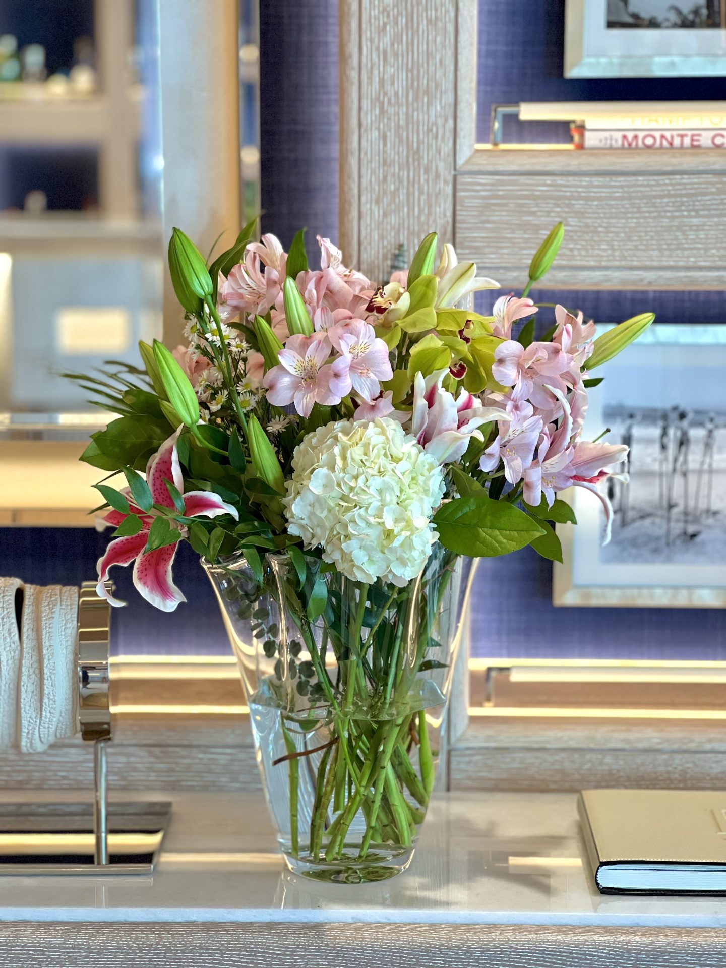6. How do you incorporate the yachts interior design and theme into your flower arrangements and table pieces?